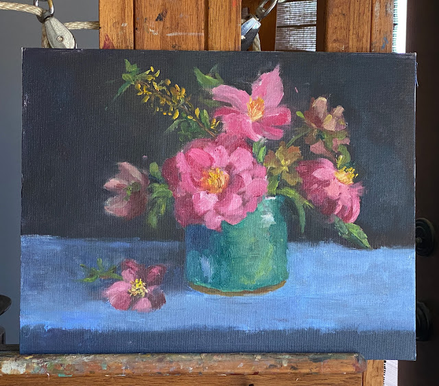 We are in peak plein air season, but I made time to paint abstractly and squeezed in a few studio pieces: